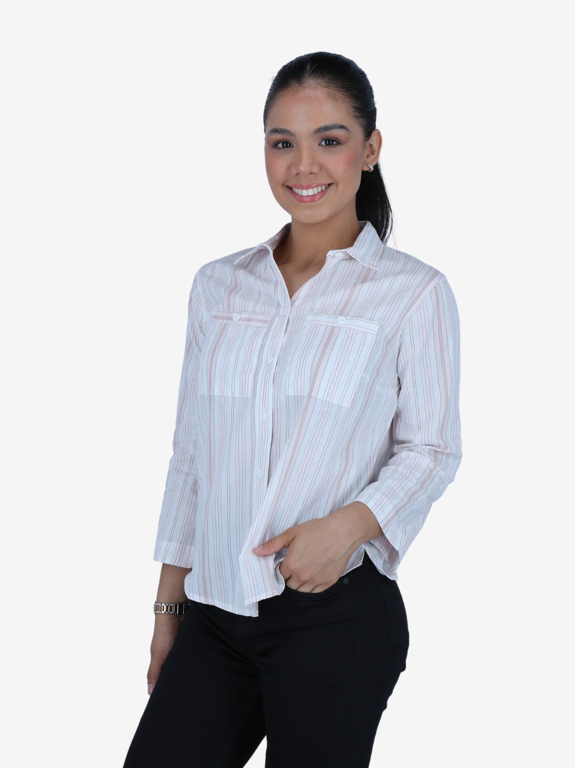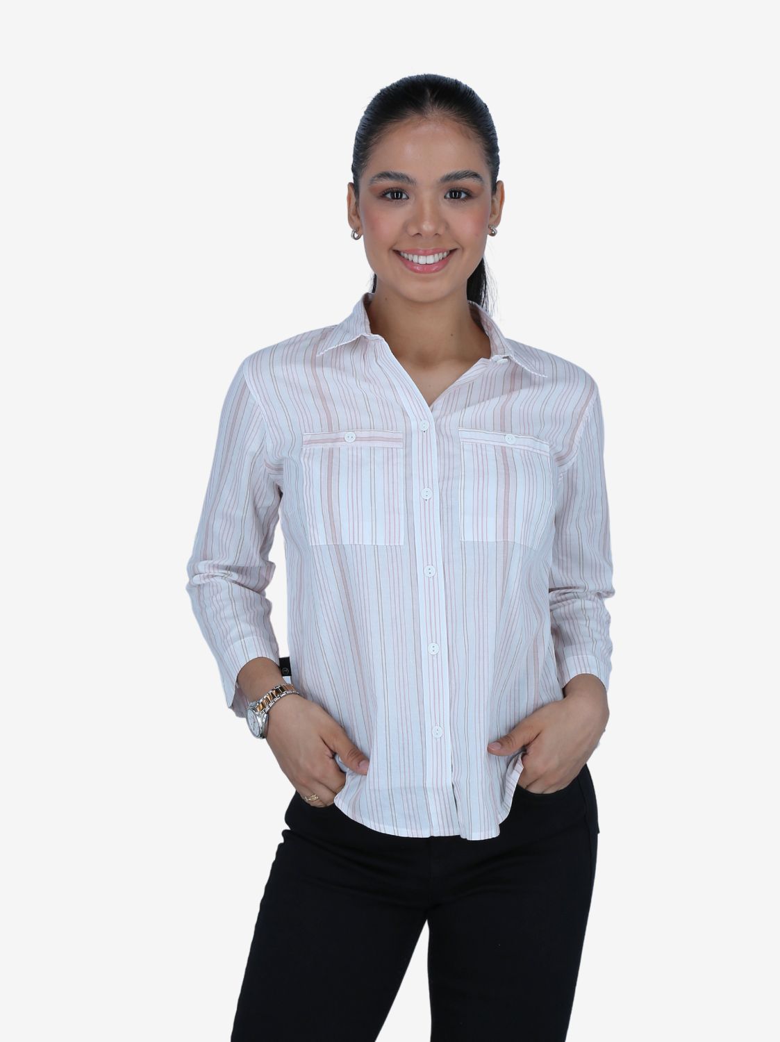 CAMISA D. MC 3/4 RAYAS ROSA