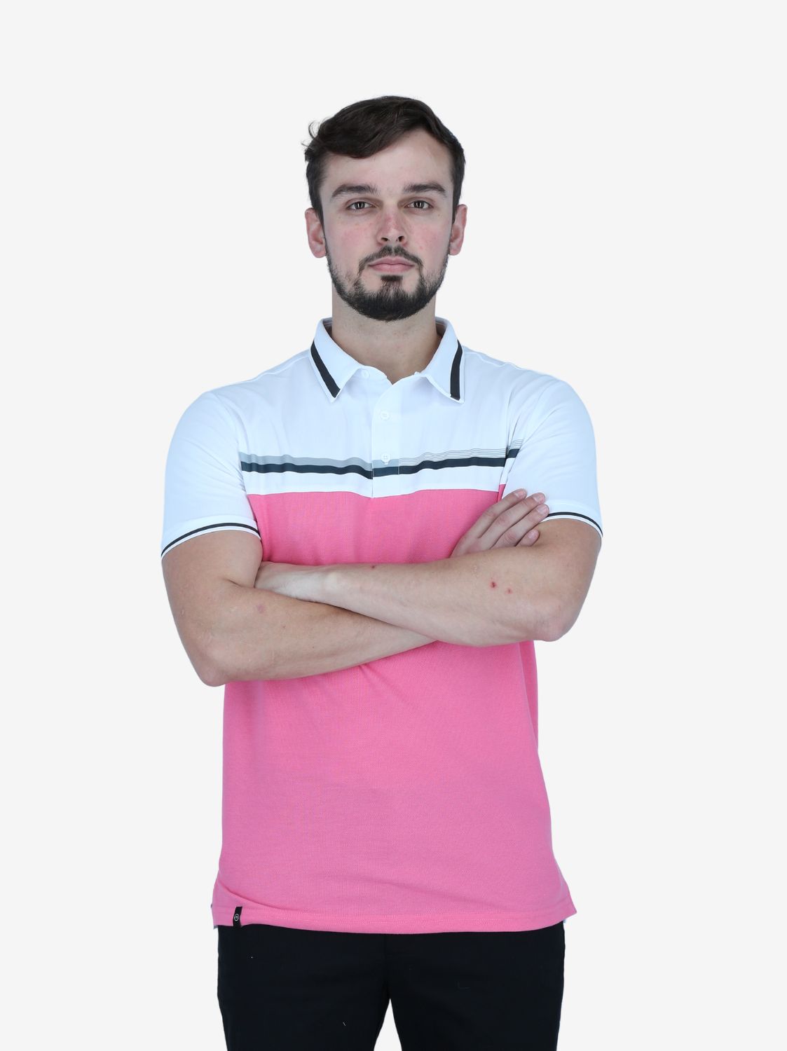 Polo box bicolor rosado y blanco. Diseño contemporáneo y tejido confortable. Estilo moderno.