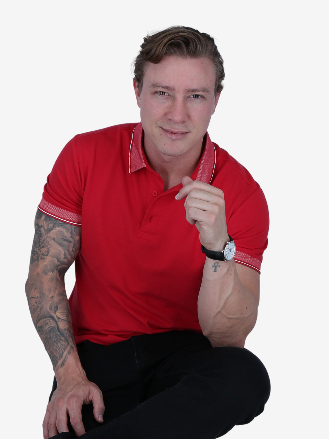 Polo box rojo combinado. Combinación de colores vibrante y tejido confortable. Estilo enérgico.