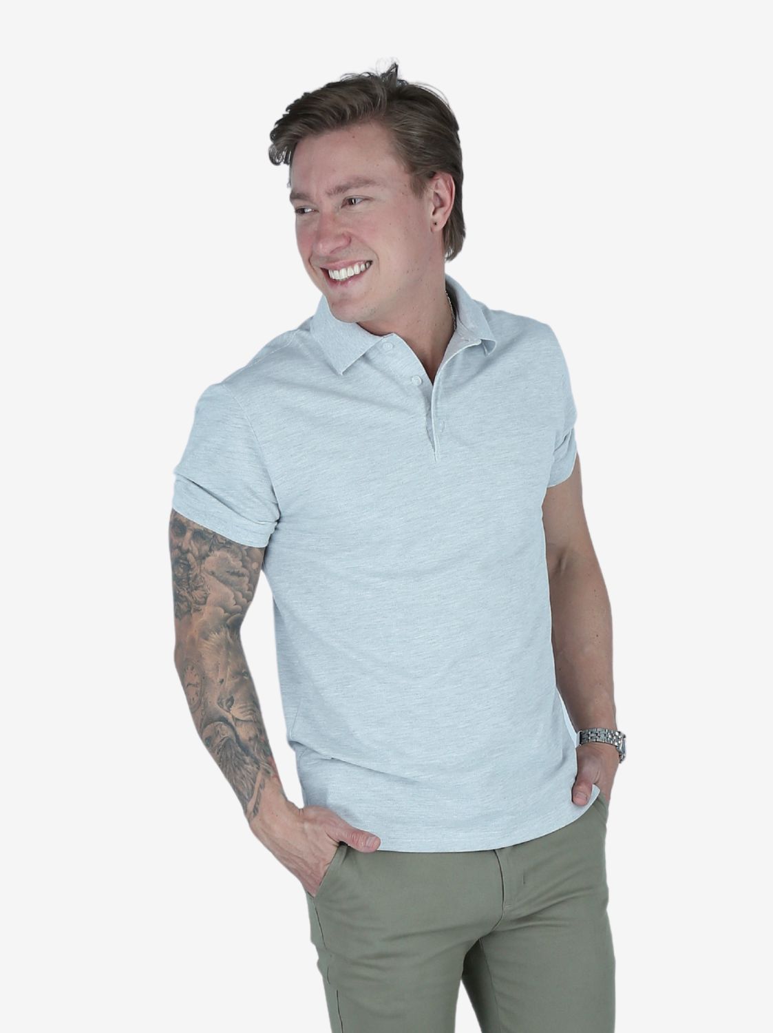 Polo Slim blanco jaspeado. Corte ajustado y textura sutil. Estilo moderno.
