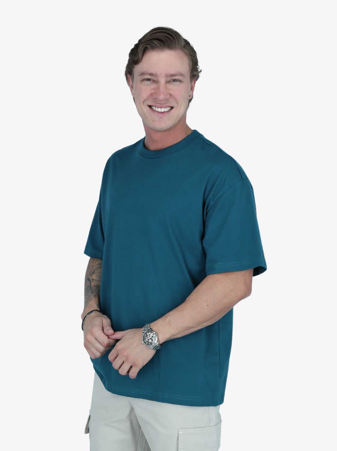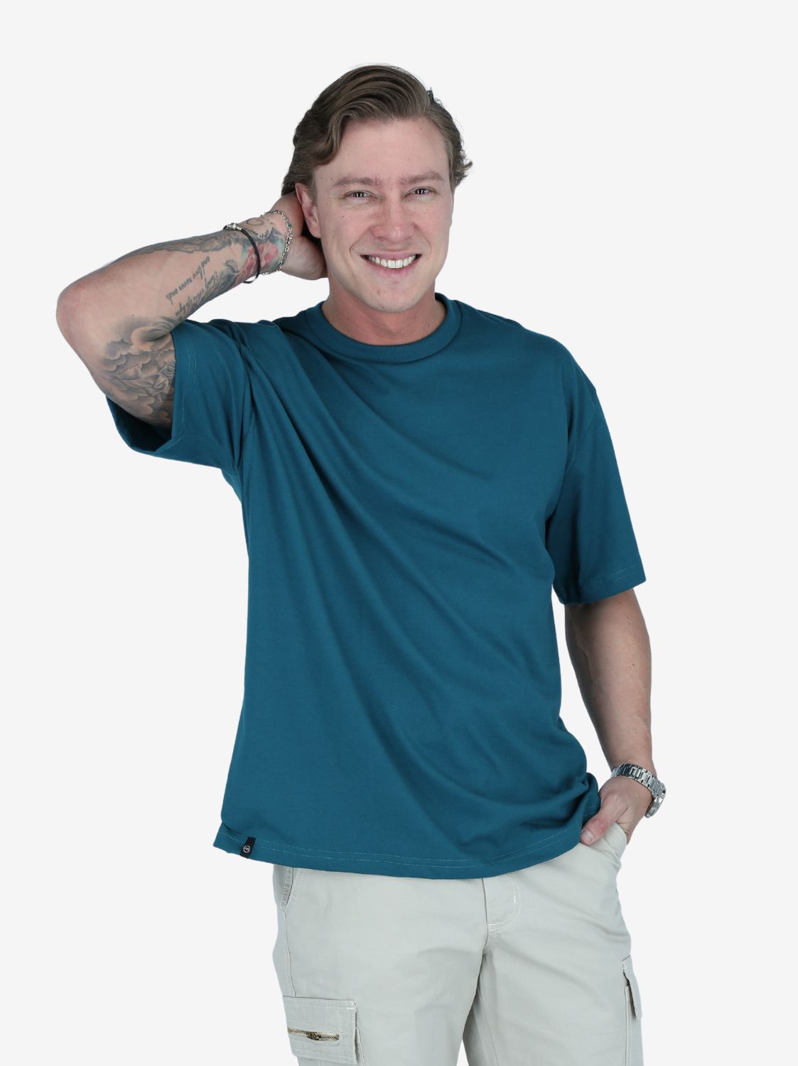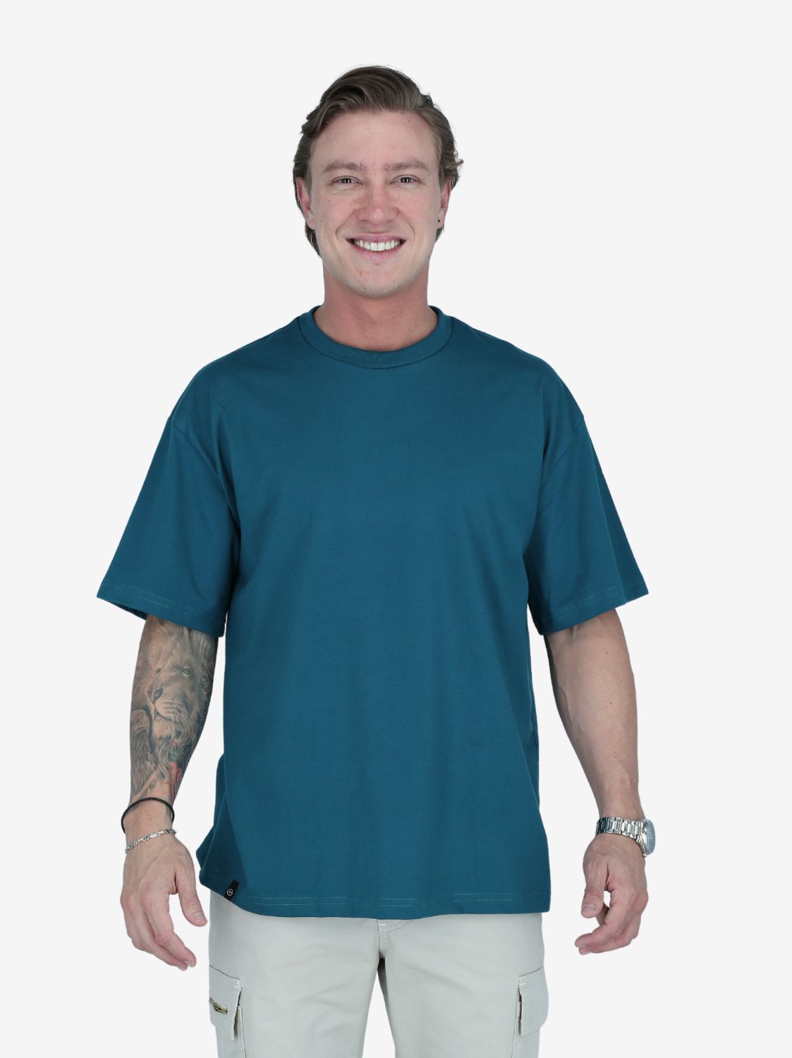 Camiseta oversize verde musgo. Corte amplio y tono terroso. Estilo natural.