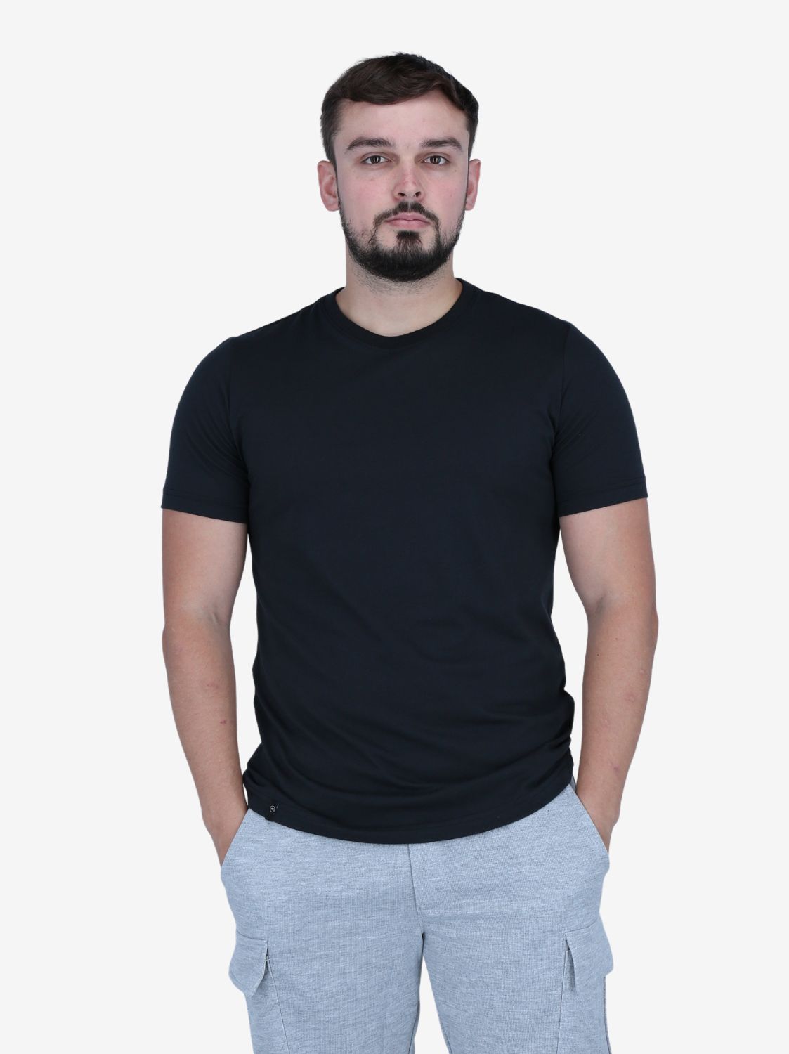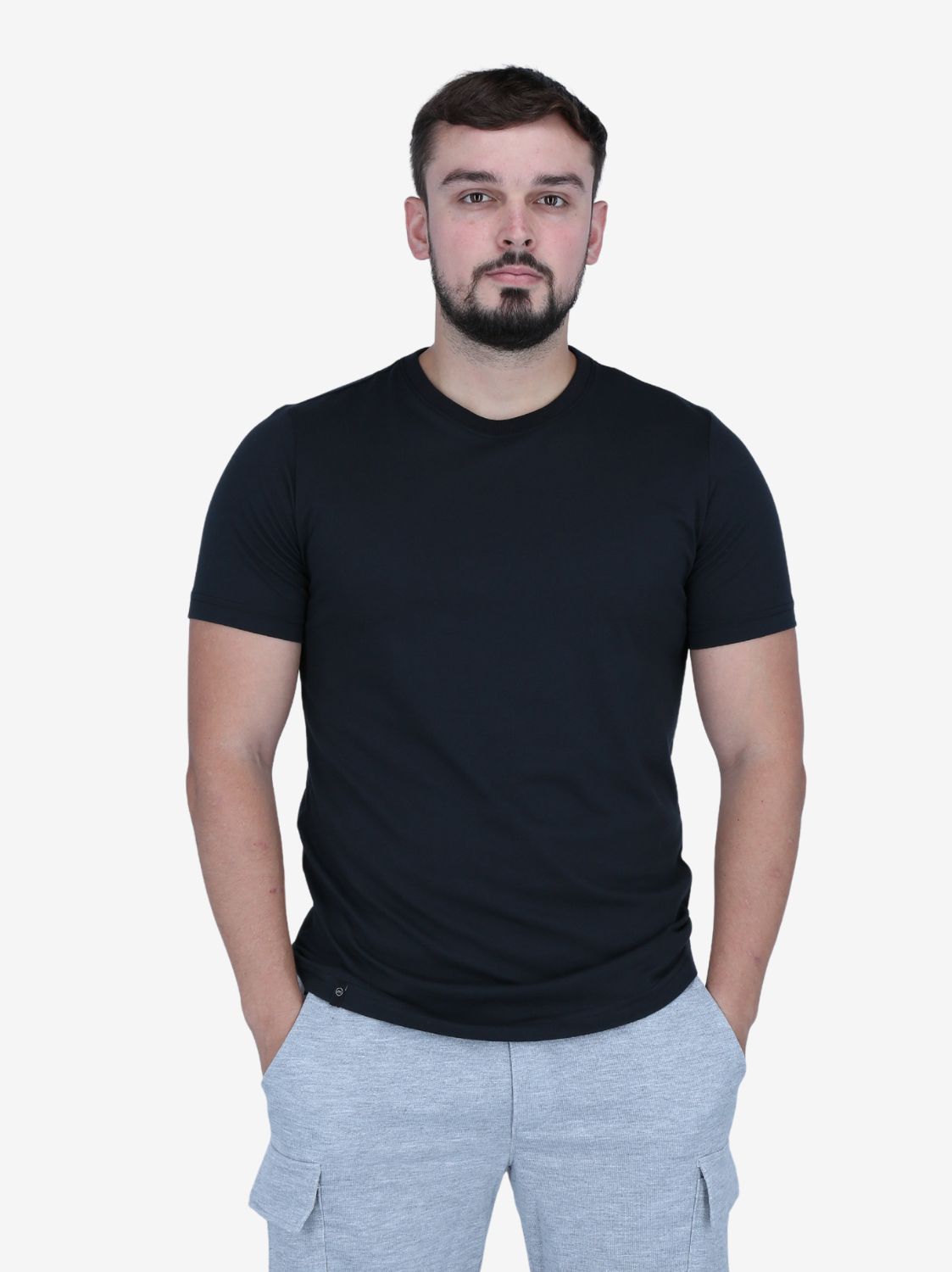 Camiseta negra de microfibra. Tejido suave y confortable. Estilo esencial.