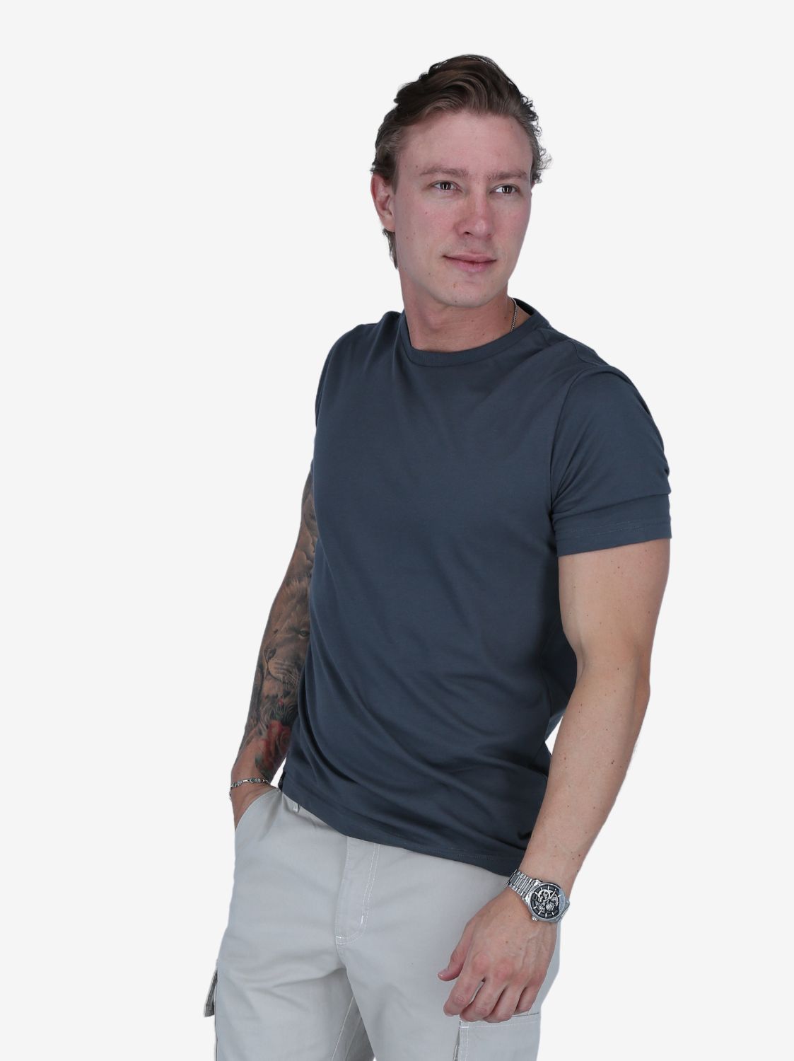 Camiseta plomo acero. Tonalidad contemporánea y diseño clásico. Estilo sobrio.