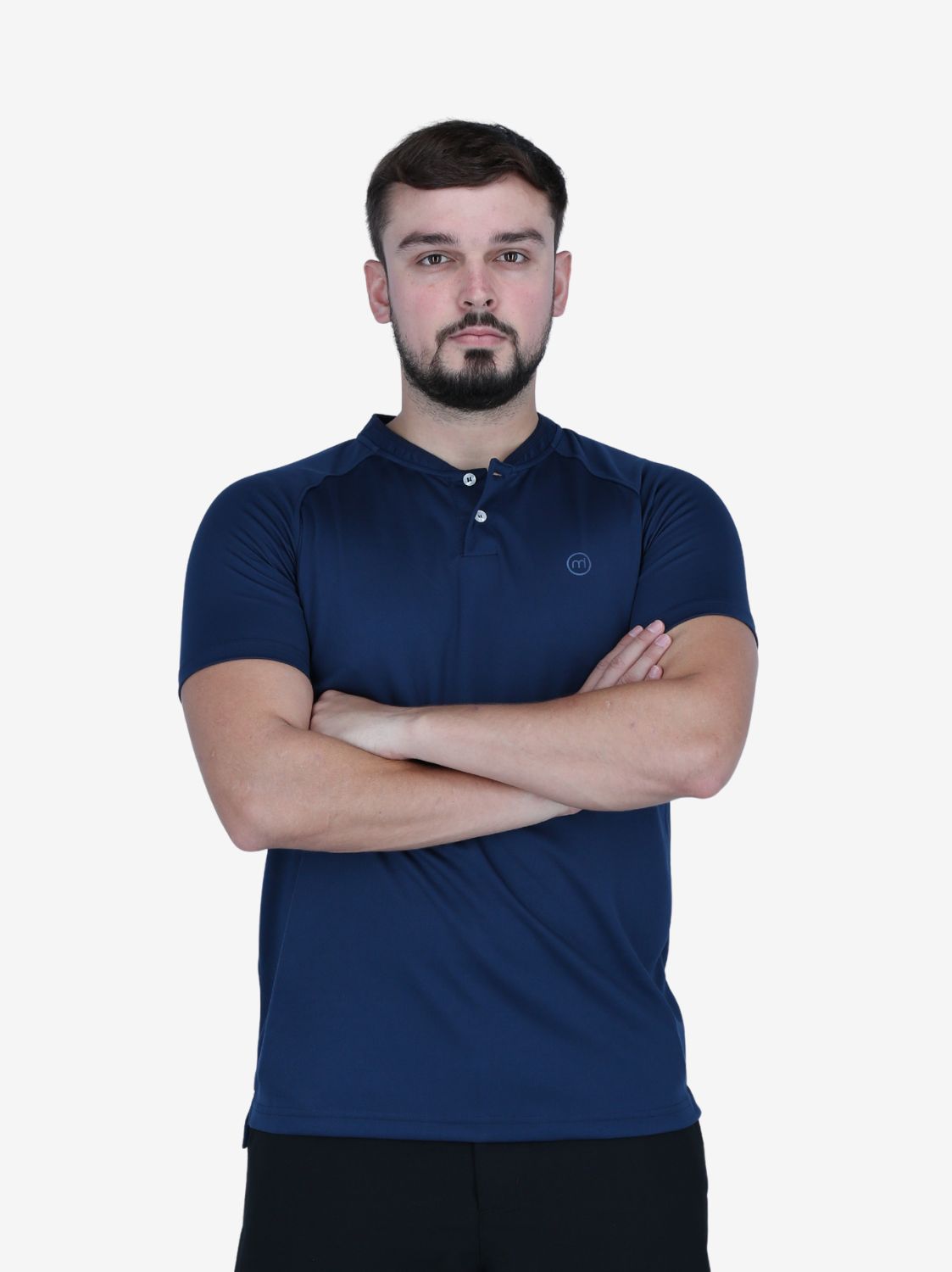 Camiseta Henley Hightec azul marino. Tejido técnico, ligero y transpirable. Diseño deportivo con botones. Estilo moderno.