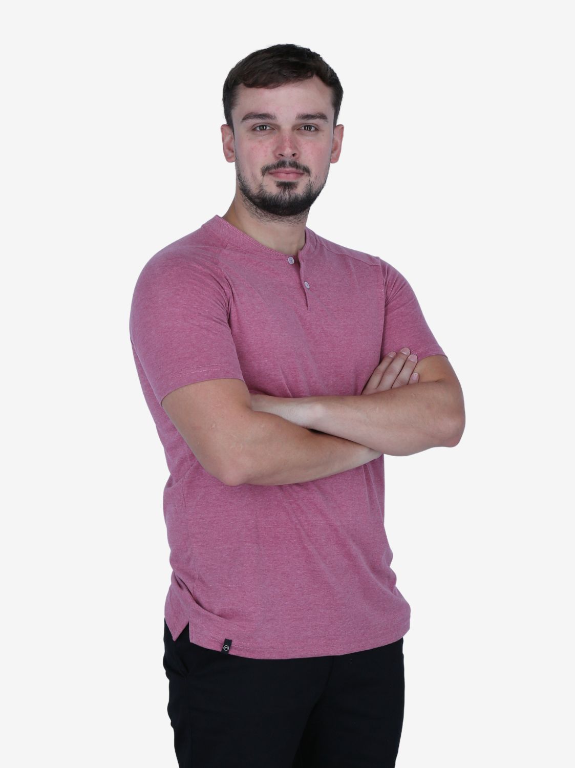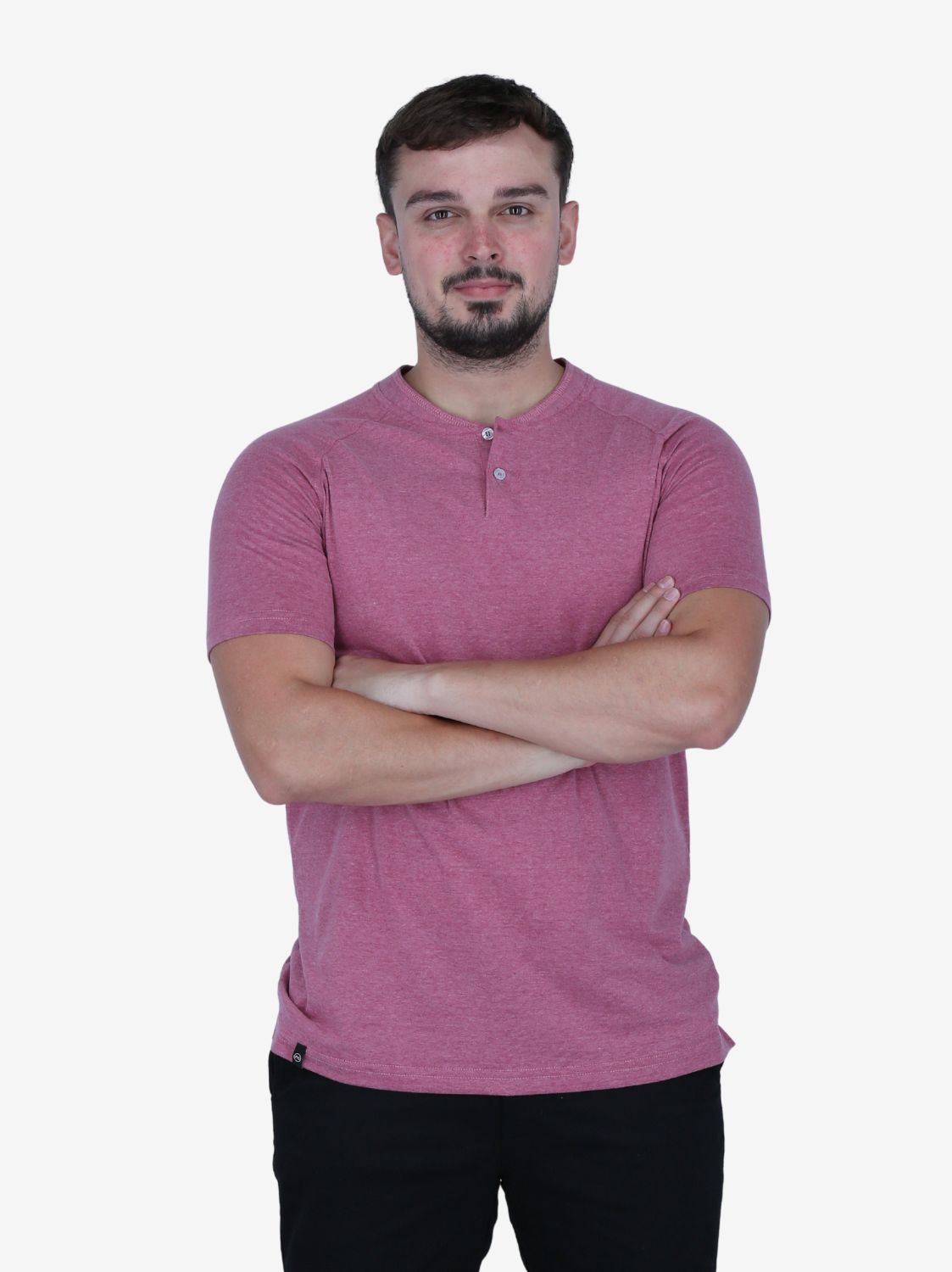 Camiseta Henley color vino. Tejido suave. Diseño casual con botones. Estilo moderno.