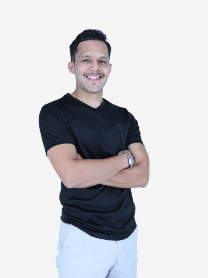 Camiseta de cuello en V Hightec negra. Tejido técnico de alto rendimiento. Estilo deportivo.