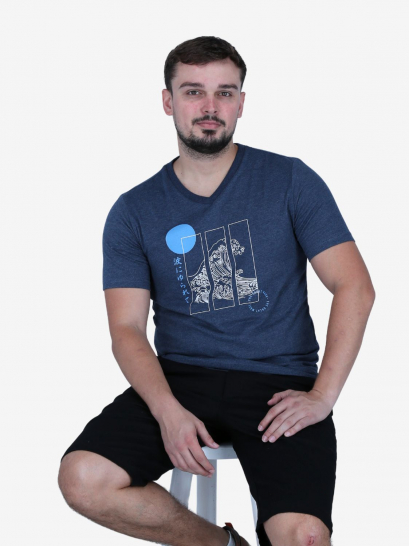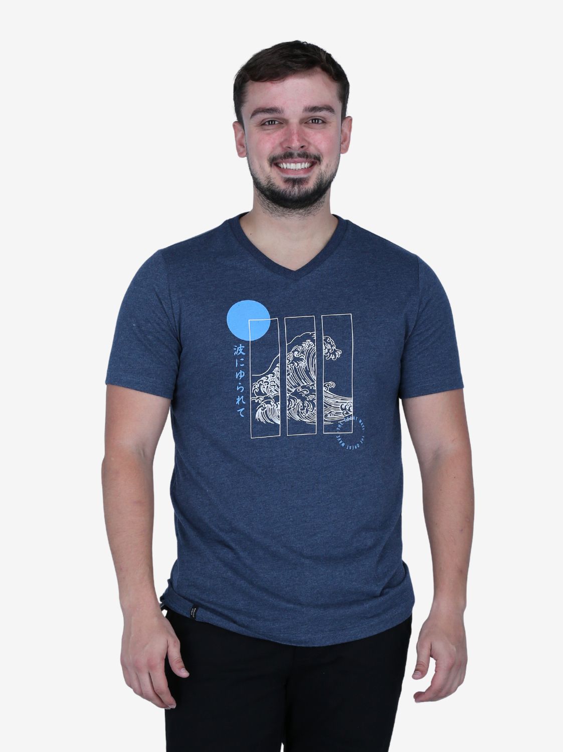 Camiseta de cuello en V con diseño Wave. Estampado dinámico y tejido suave. Estilo surfista.