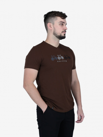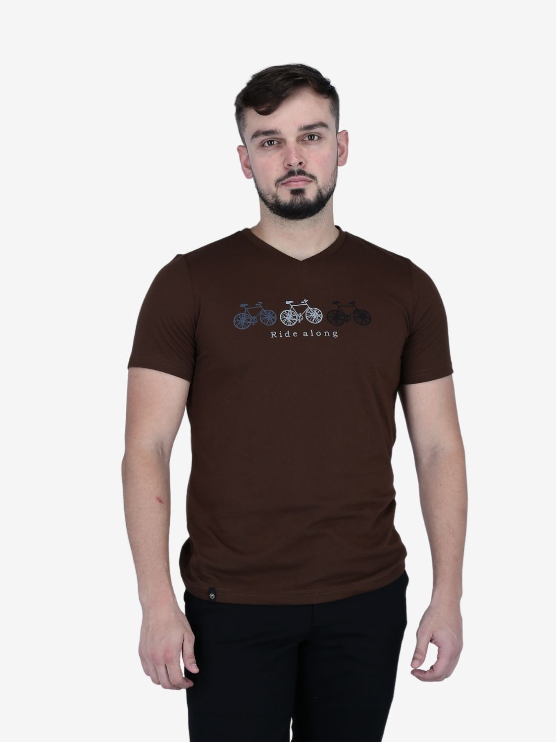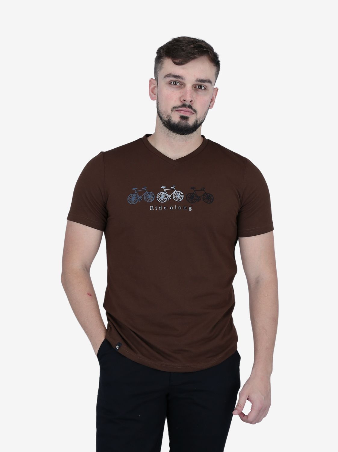 Camiseta de cuello en V con diseño de bicicleta. Estampado deportivo y tejido suave. Estilo ciclista.