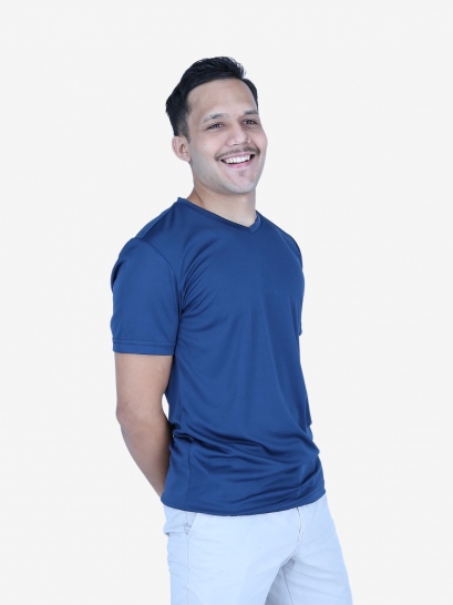 Camiseta de cuello en V Hightec azul marino. Tejido técnico de alto rendimiento. Estilo deportivo.