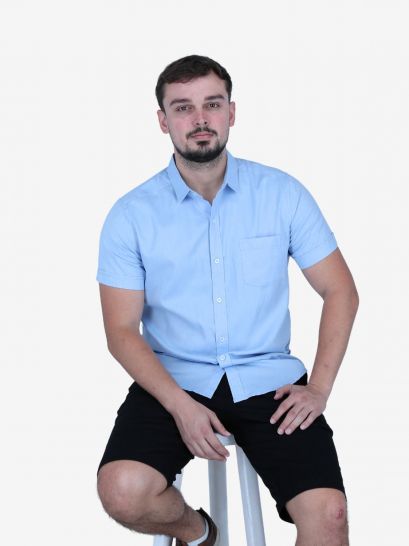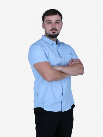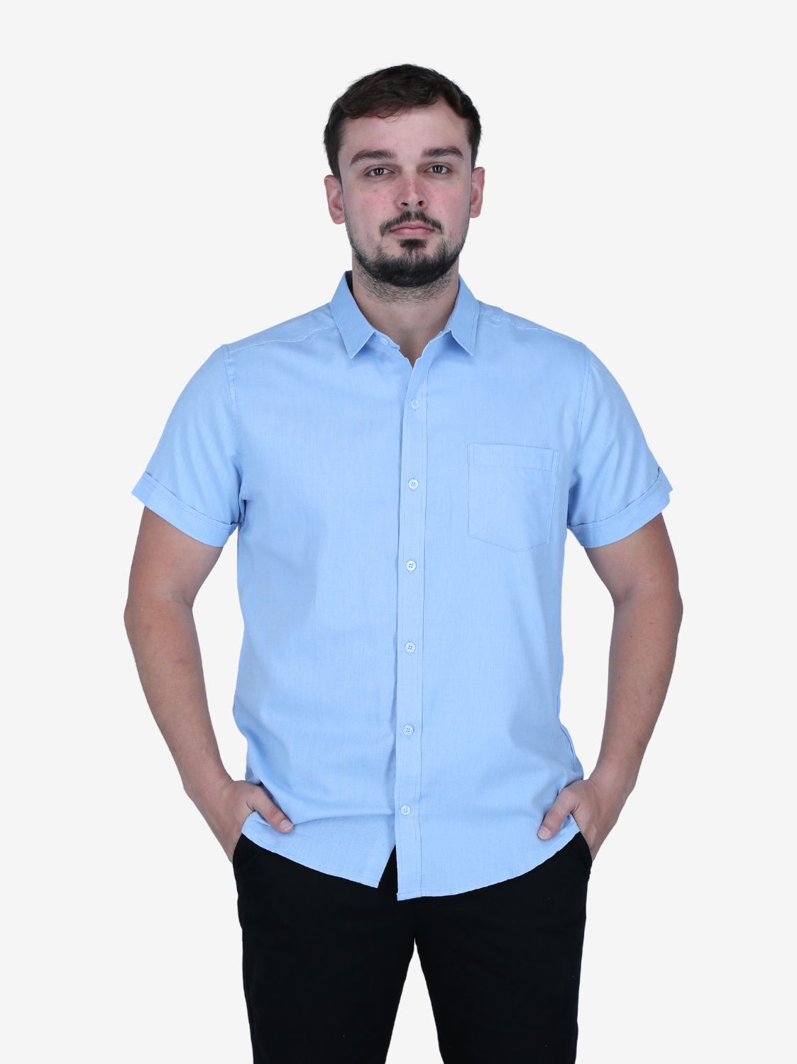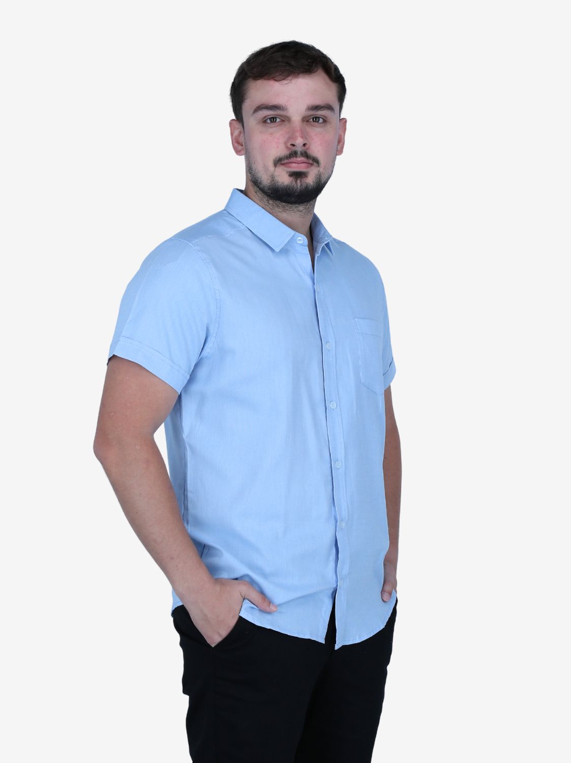 Camisa Slim celeste de manga corta para varón. Corte ajustado. Diseño moderno. Estilo fresco.
