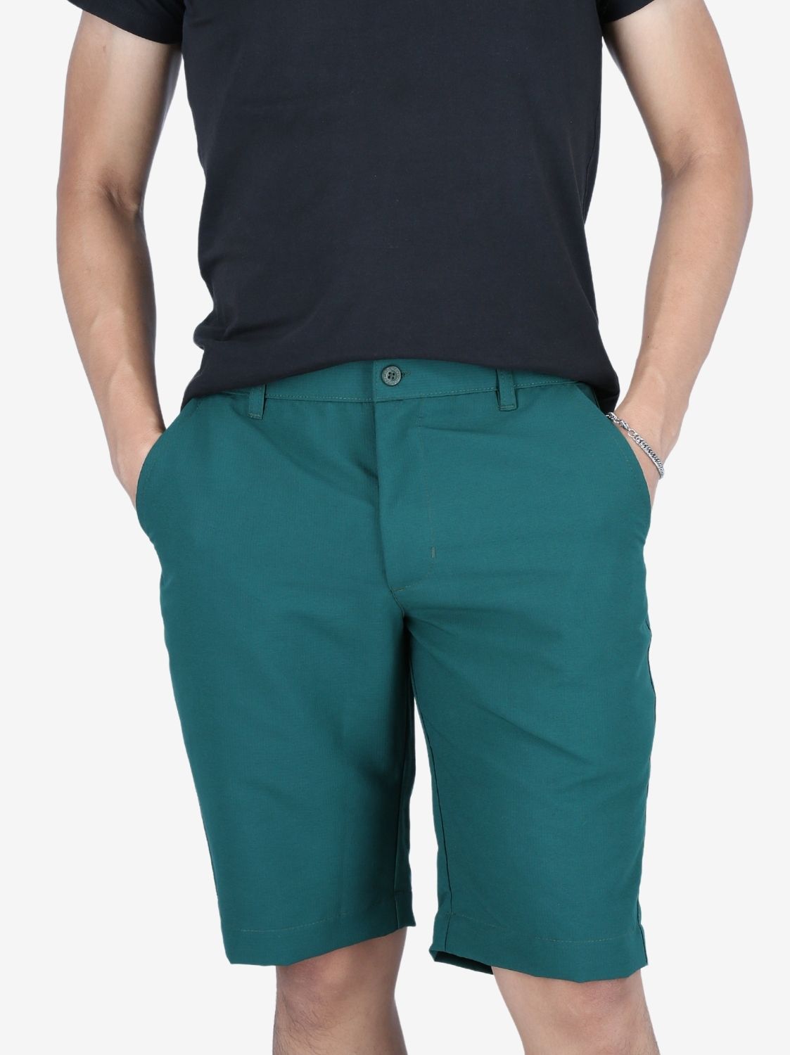 Bermuda slim verde. Corte ajustado. Tejido resistente y cómodo. Diseño minimalista. Estilo moderno.