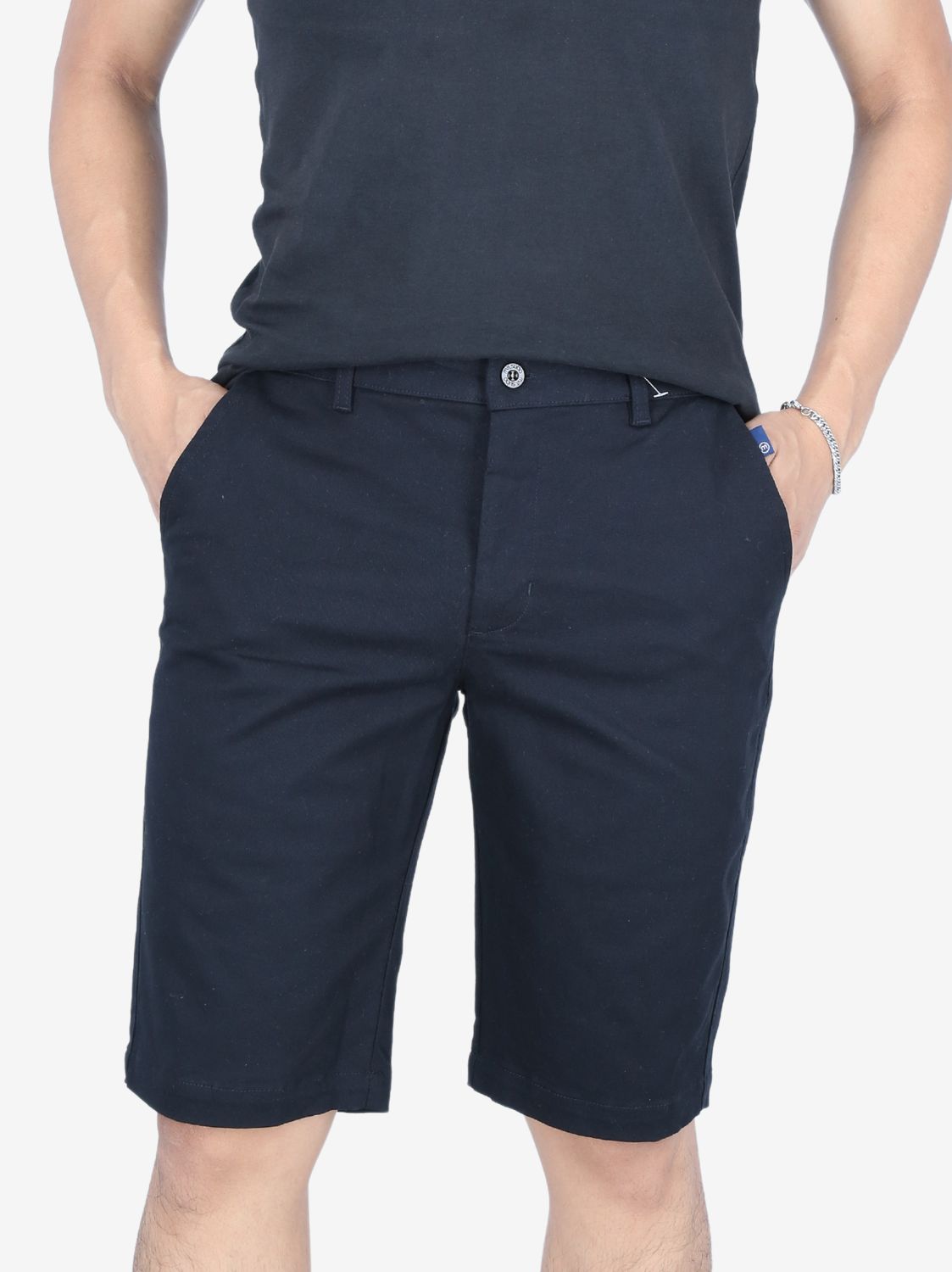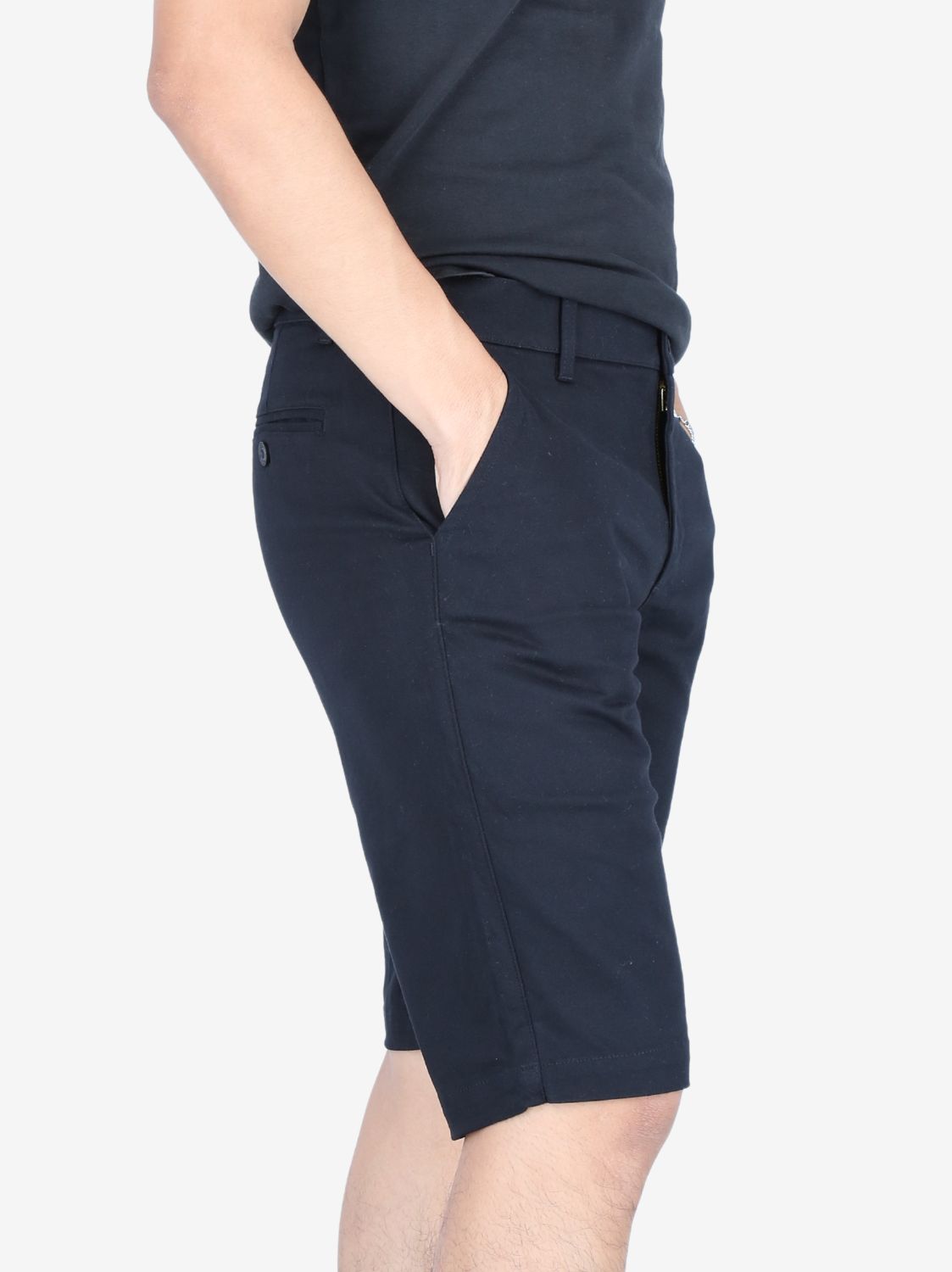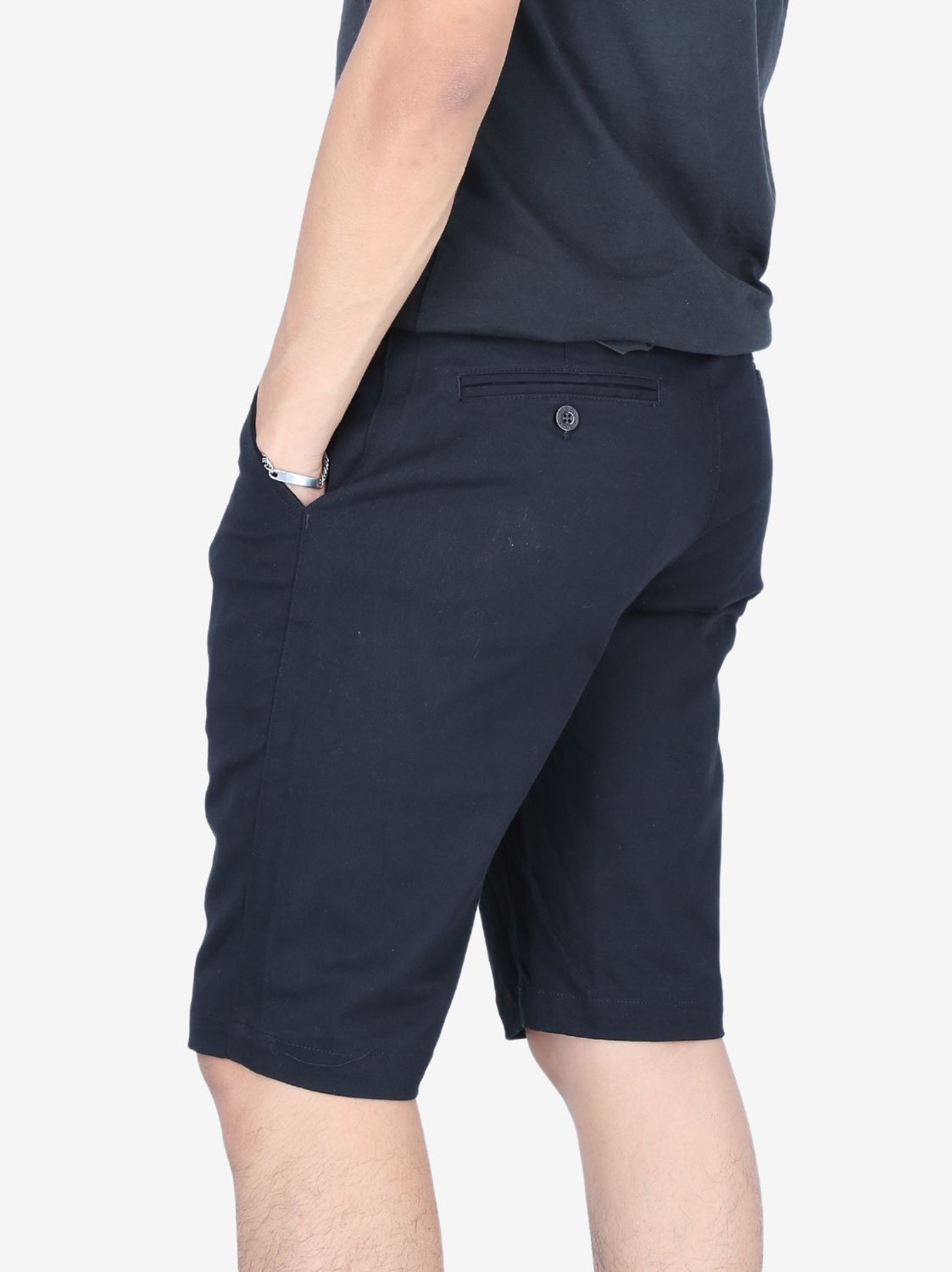 Bermuda Slim negra para varón. Corte ajustado. Tejido resistente y cómodo. Diseño minimalista. Estilo versátil.